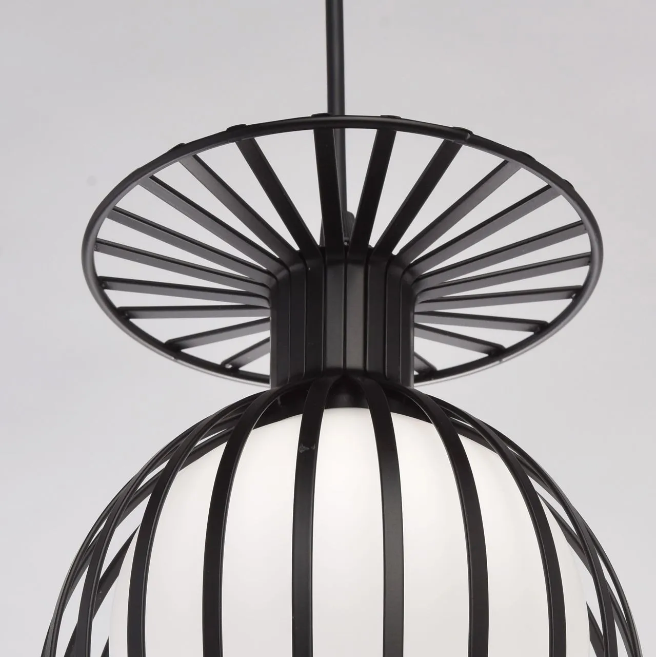 Металлическое основание черного цвета. Плафон: белое матовое стекло.
